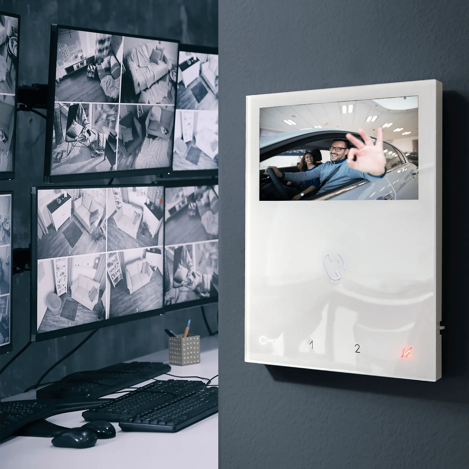 Het gemak van snel reageren, zonder fysiek naar de ingang te hoeven gaan. Waar dan ook, binnen of buiten het gebouw!